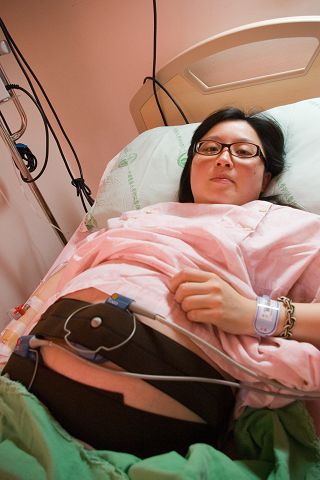 抵達醫院產房,開始例行檢查後,護士判定開一指,為求小心為妙,還是先裝上胎兒監視器來觀察陣痛頻率及胎兒心跳半小時再行評估