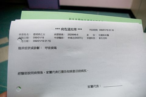而我過去後,醫師冷不防的塞給我好幾張文件,頭一張就是''病危通知單''