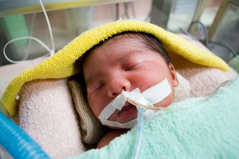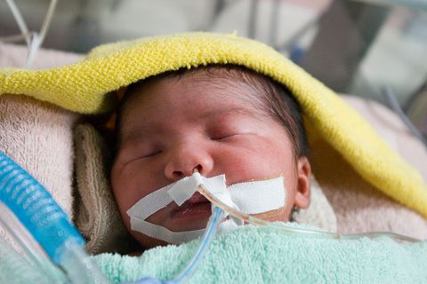 小蘋果被取出後呈現呼吸窘迫即有呼吸衰竭現象,幸好在剖腹過程有請小兒科醫師到場,並在胎兒取出後立刻進行插管...
