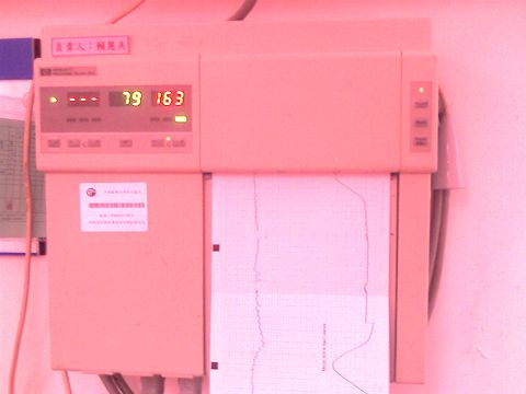 檢查後反應出陣痛頻率已經快到留院標準,中國醫藥大學附設醫院 邱醫生反應胎兒心跳一直維持在150-160之間,起伏不大~表示此現象並不正常....