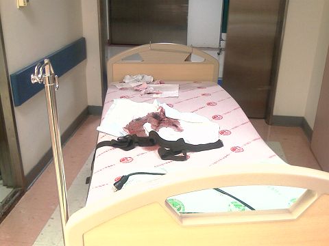 之後,麻醉科醫師來跟我說明一下狀況~後來邱醫師也來跟我說明為何要緊急剖腹產,原因是:羊水大量含血,懷疑是胎盤早期剝離,為了小孩必須盡快進行剖腹產...
