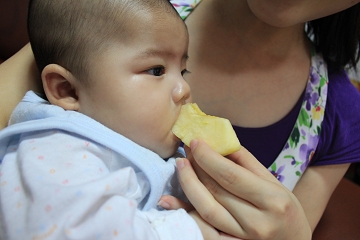 話說有天蘋果媽將一塊蘋果往小柔嘴巴塞去~