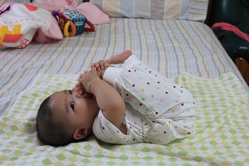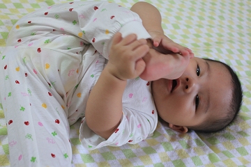 三不五時的把自己的腳往嘴裡塞....有時還一次塞兩腳哩!!!!有夠誇張的!