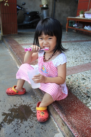某日假日返鄉探親,突然有位可愛的小娃兒在一旁刷牙~